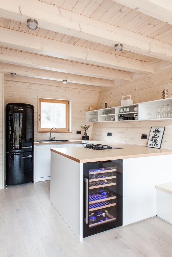 木屋的形狀和顏色設計主要是為了模糊外部和內部空間之間界限。木屋的設計旨在提供一個抵御惡劣天氣的庇護所,使用柔軟的木質內飾和耐用的金屬外墻板。